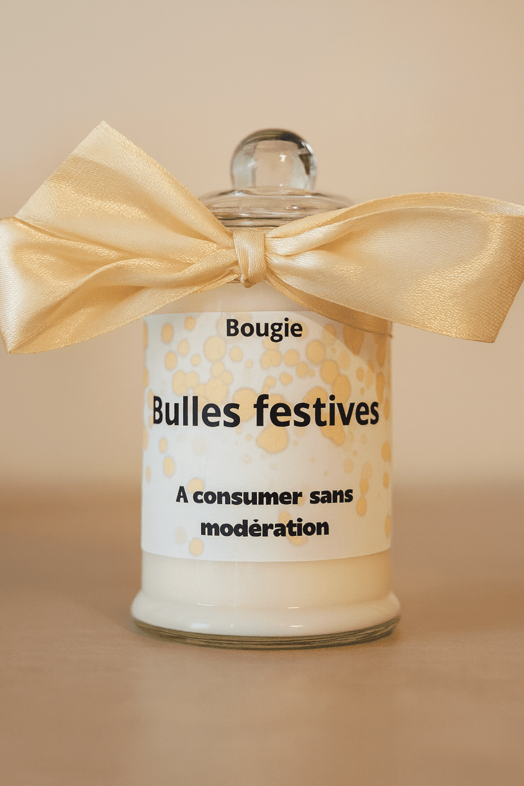 Célébrez chaque instant avec notre bougie Bulles Festives ! Dans une délicate bonbonnière en verre elle apporte une touche de magie et de pétillant à votre intérieur.