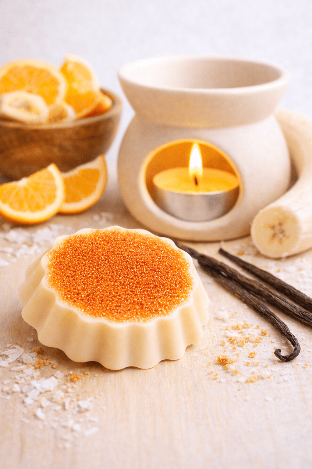 Laissez-vous transporter par l'effluve vive et pétillante de l'orange, qui s'entremêle avec la gourmandise de la banane. À chaque inhalation, vous retrouverez cette nostalgie des bonbons d'antan, qui évoquent les journées ensoleillées remplie de rires et de jeux. Ce mélange subtil offre un équilibre parfait entre acidité et douceur, rendant votre espace chaleureux et accueillant.