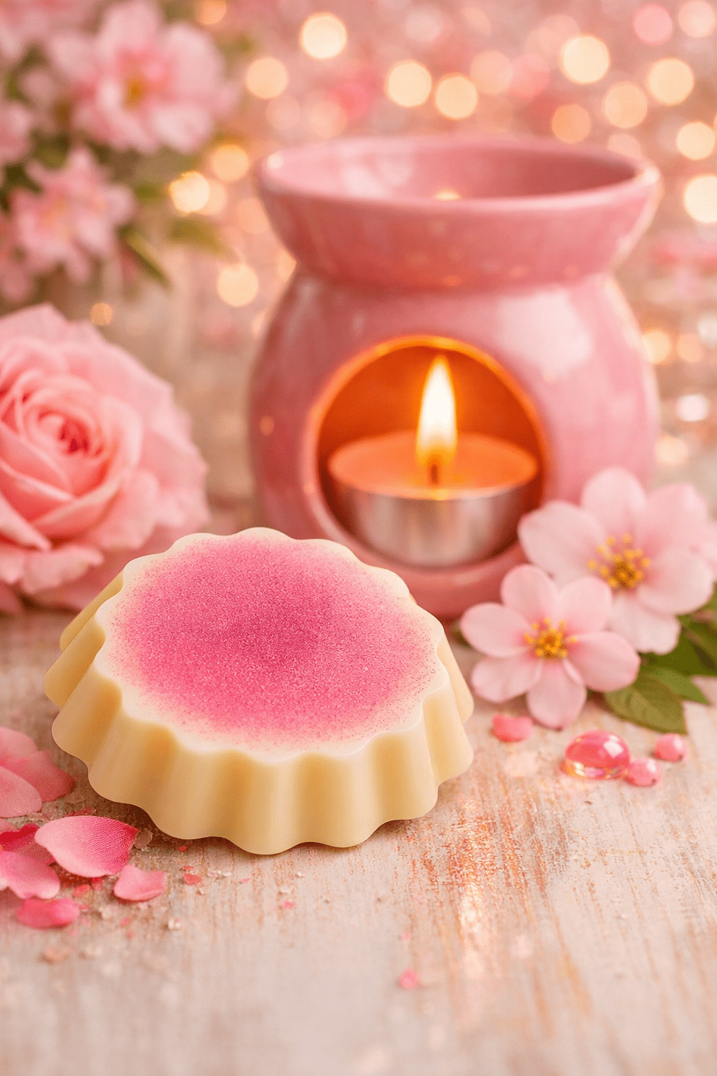 Laissez-vous transporter par la fragrance raffinée de notre fondant parfumé. Avec ses notes florales luxuriantes, il combine l’intensité douce et romantique de la rose fraîchement cueillie à des nuances légères de miel et de musc. Cette senteur enchanteresse crée une atmosphère apaisante et propice à la détente. Idéal pour aromatiser vos moments de calme, ce fondant promet de transformer votre quotidien en une expérience sensorielle unique.